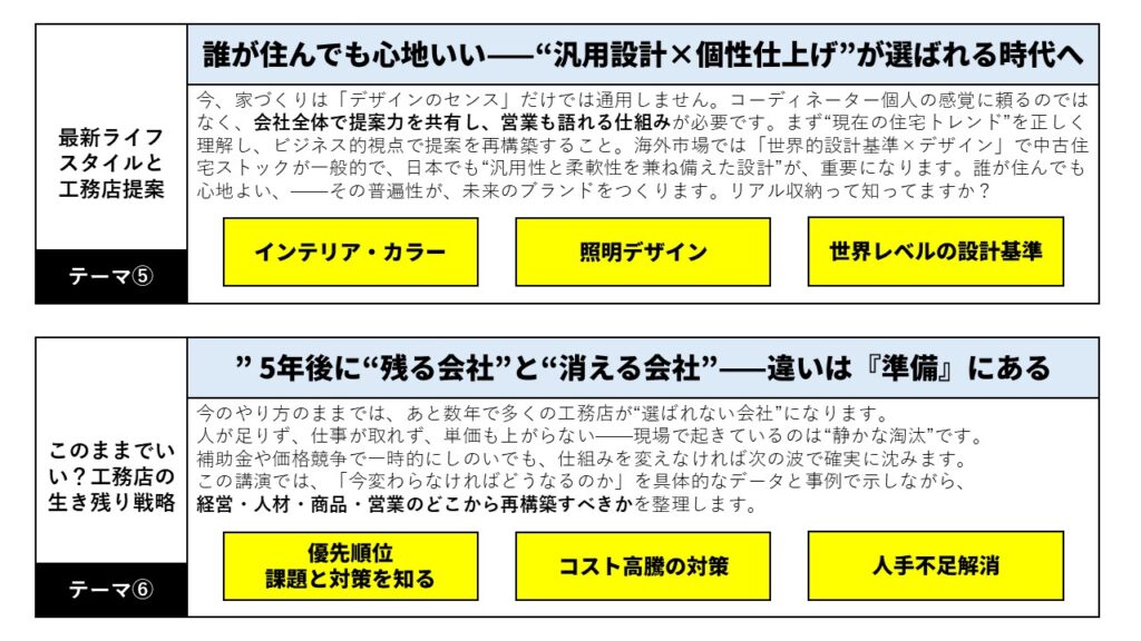 講演・セミナーテーマ 工務店・ビルダー向け2026年版