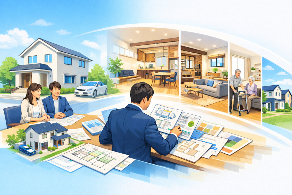 バリアフリー設計はもちろん、太陽光発電・蓄電池などのレジリエンス設備、空調・給湯・通信といった快適性を支える機器まで含めて、住まいの提案内容そのものが変わっていきます。